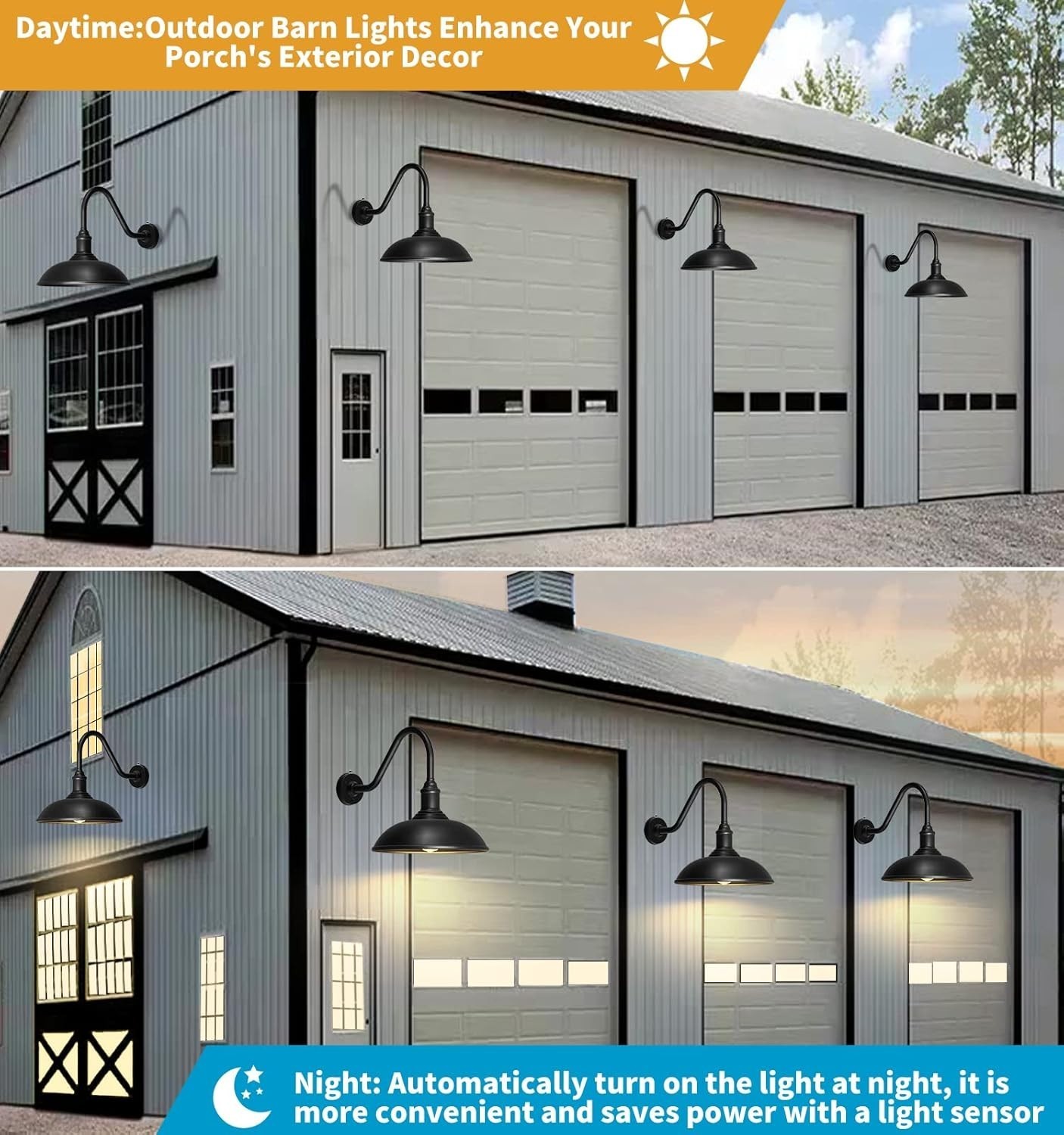 Dusk To Dawn Barn Lights:These Outdoor Barn Lights Are Equipped With High-Sensitivity Sensors,Which Can Automatically Turn On At Dusk And Turn Off During The Day,Energy-Saving And . They Are Perfect For Any Outdoor Space And Will Add Convenience To Your Everyday Life. Barn Light