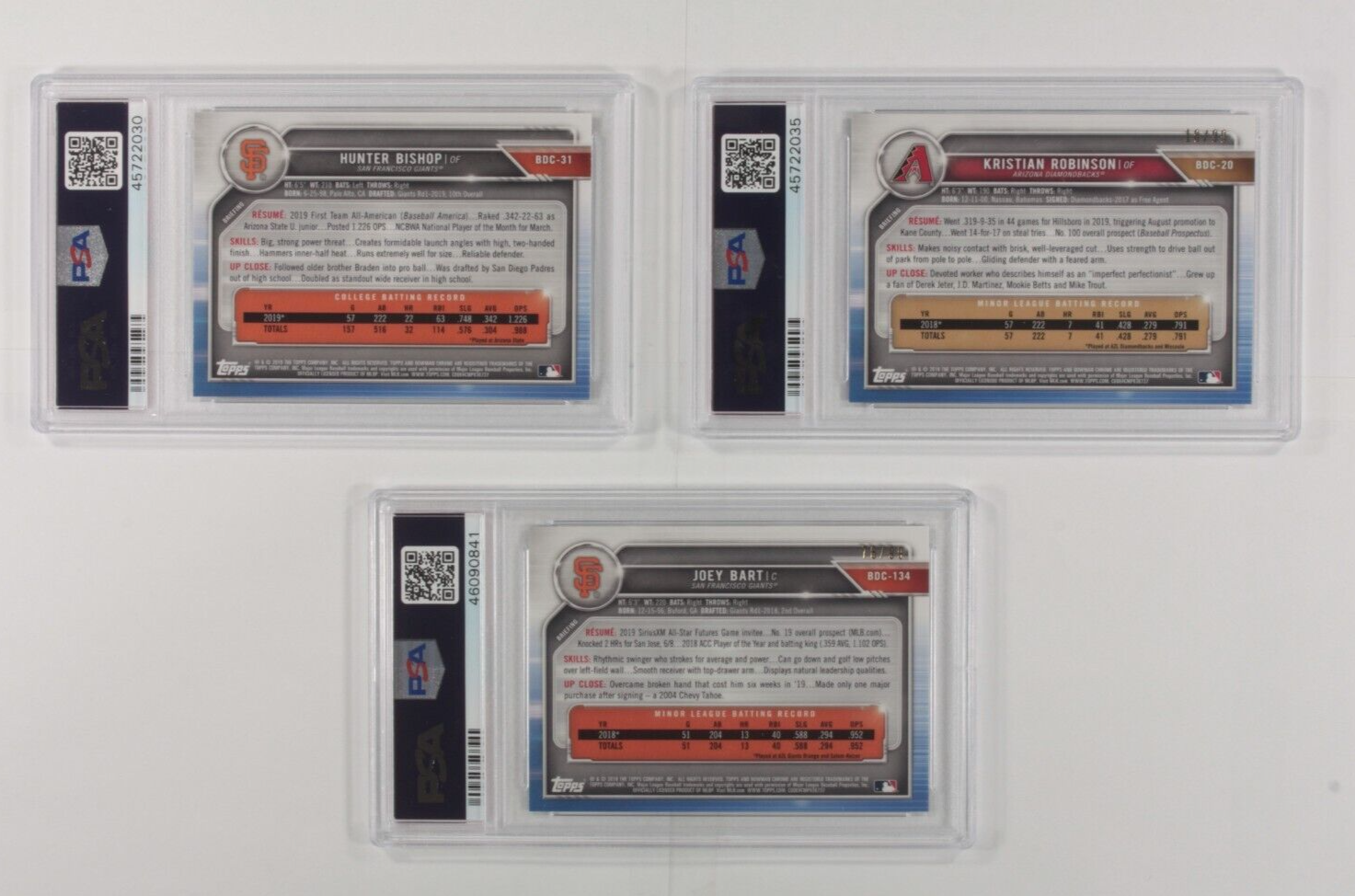 Lot De 3 2019 PSA 10 Bowman Chrome Draft Sapphire Édition Bishop, Bart, Robinson