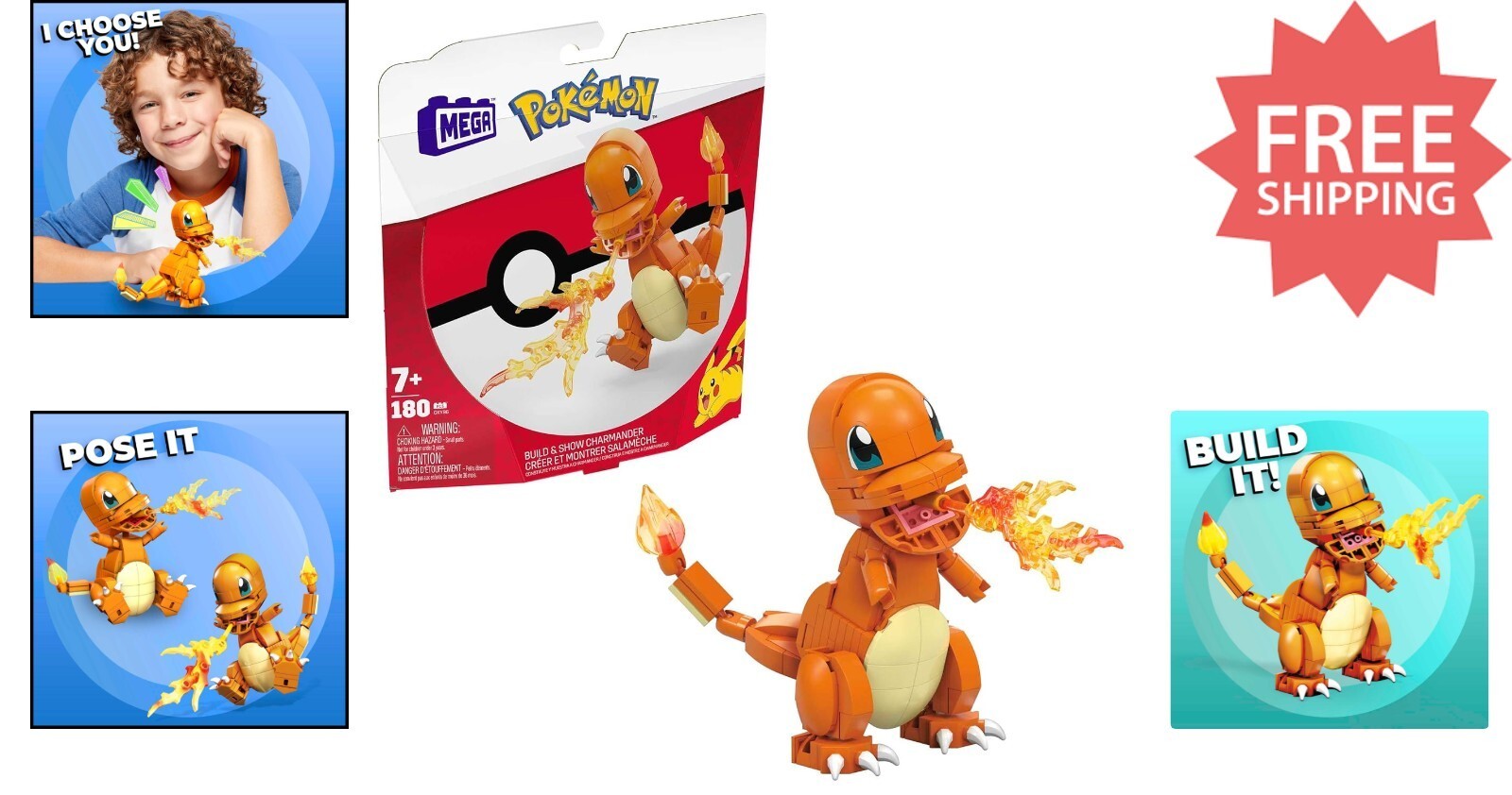 Build and display your own fiery hero with the Buildable, Poseable Charmander?a 4-inch tall, authentically modeled Pokemon figure. Crafted with fine detail, this Fire-type Pokemon features poseable joints and fire-breathing accents, perfect for imaginative battles and creative play. Compatible with all Mega Construx building sets and other major brands, it encourages building skills and storytelling. Take your Pokemon training to the next level by customizing battle stances and attack effects. Ideal for ages 7 and up.