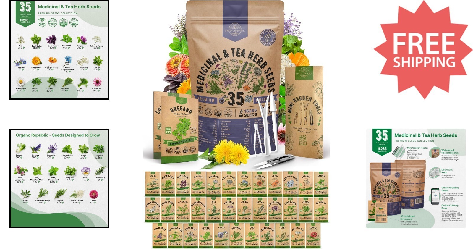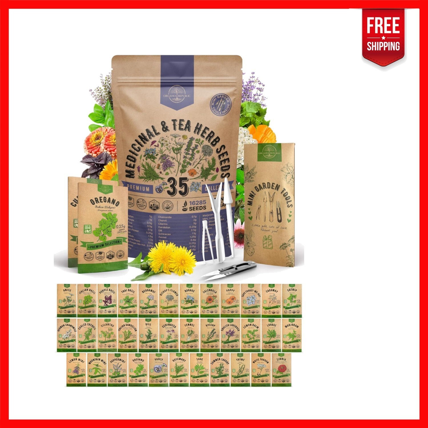 Discover the ultimate herb seed collection with our Huge Value Pack, featuring 35 non-GMO heirloom medicinal and tea herbs. With over 16,300 seeds, enjoy a diverse variety including Basil, Lavender, Chamomile, Rosemary, and more. Designed for indoor and outdoor planting, each seed is tested for high germination rates, ensuring a successful gardening experience.