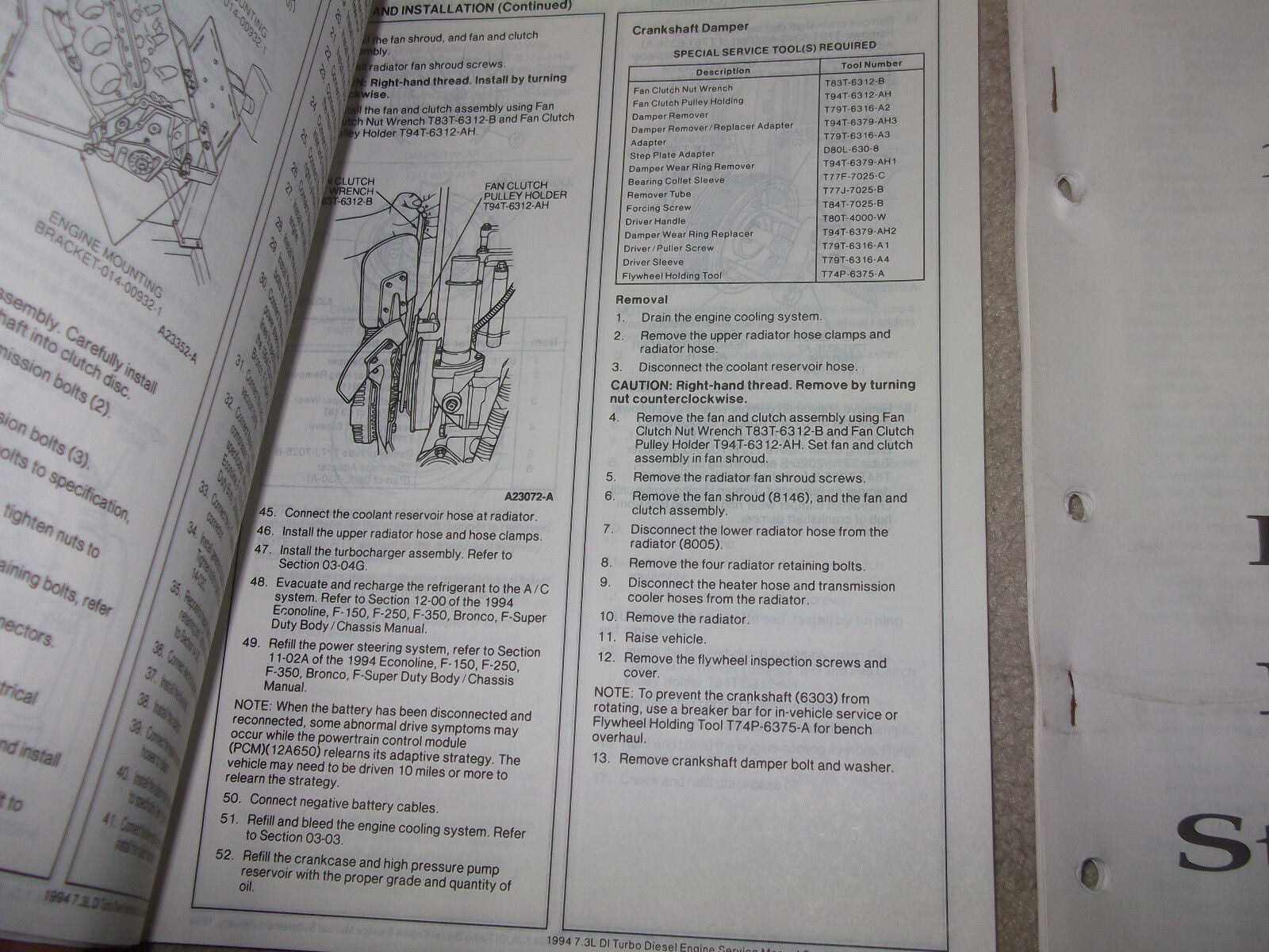 1994 Ford F-150 / F-250 / 350/450/550 / F-Super Duty Body / Chassis Service Manual, et le Manuel de service du groupe motopropulseur / transmission.