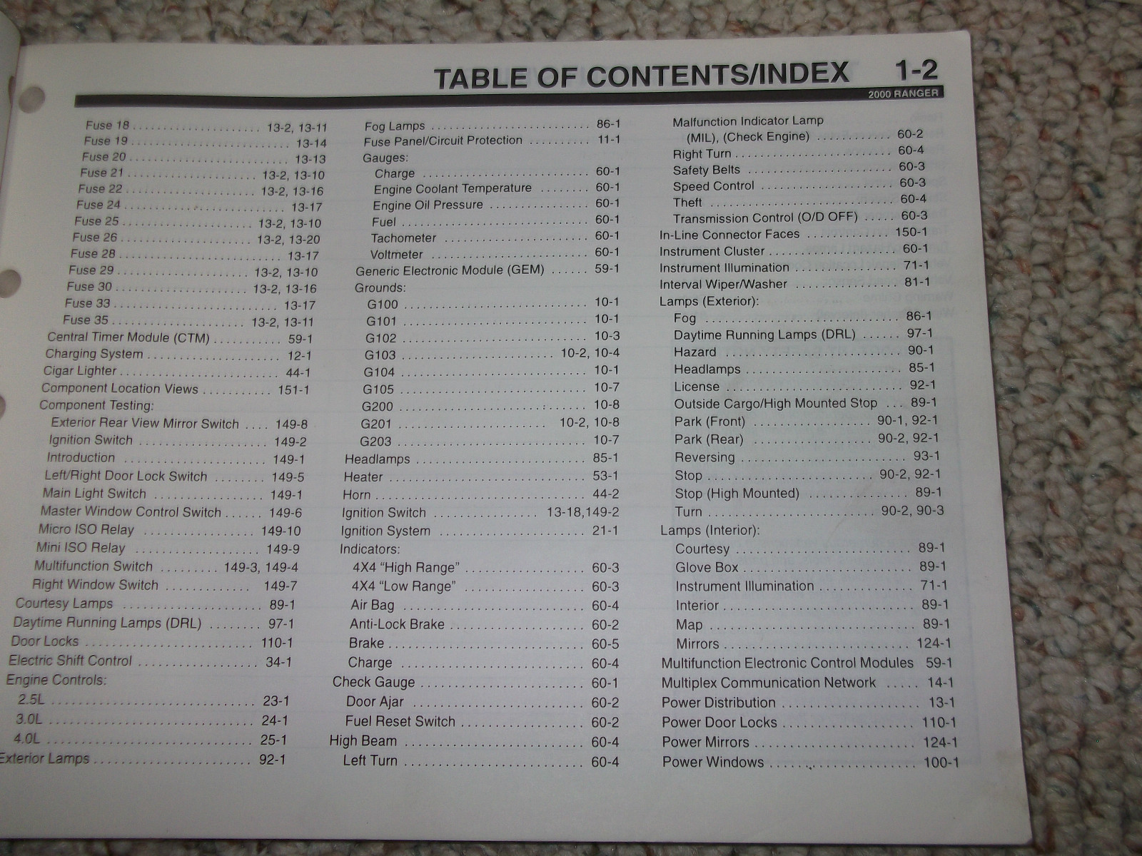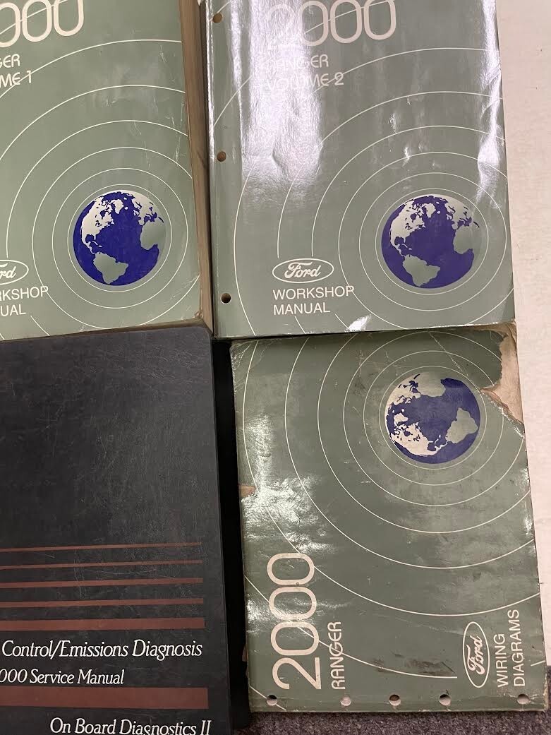 Factory 2000 Ford Ranger Factory Service Manual 2 Volume Set, Power Train Control Emission Diagnostic Manual the Electrical and Vacuum Cireing Schemas Manual.
