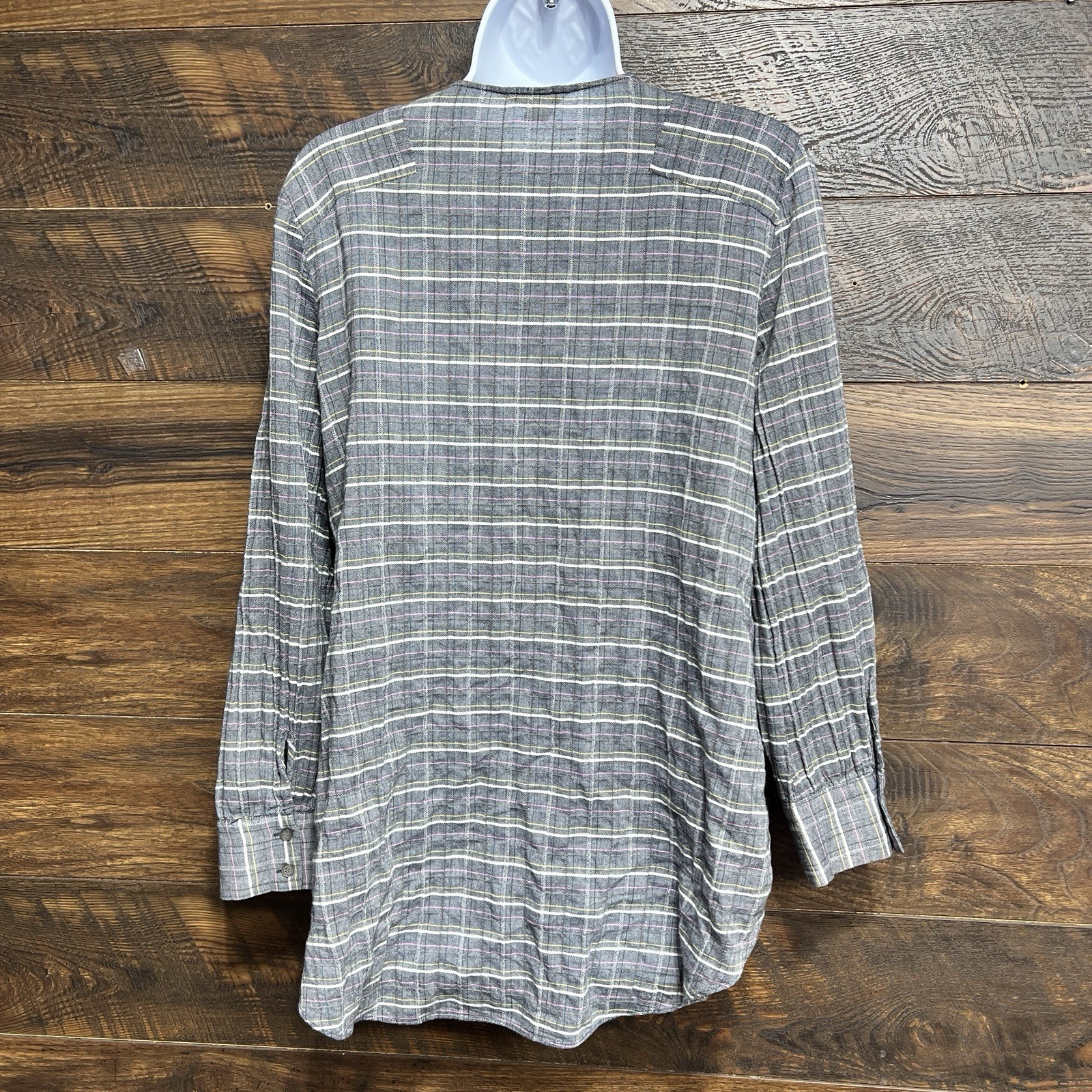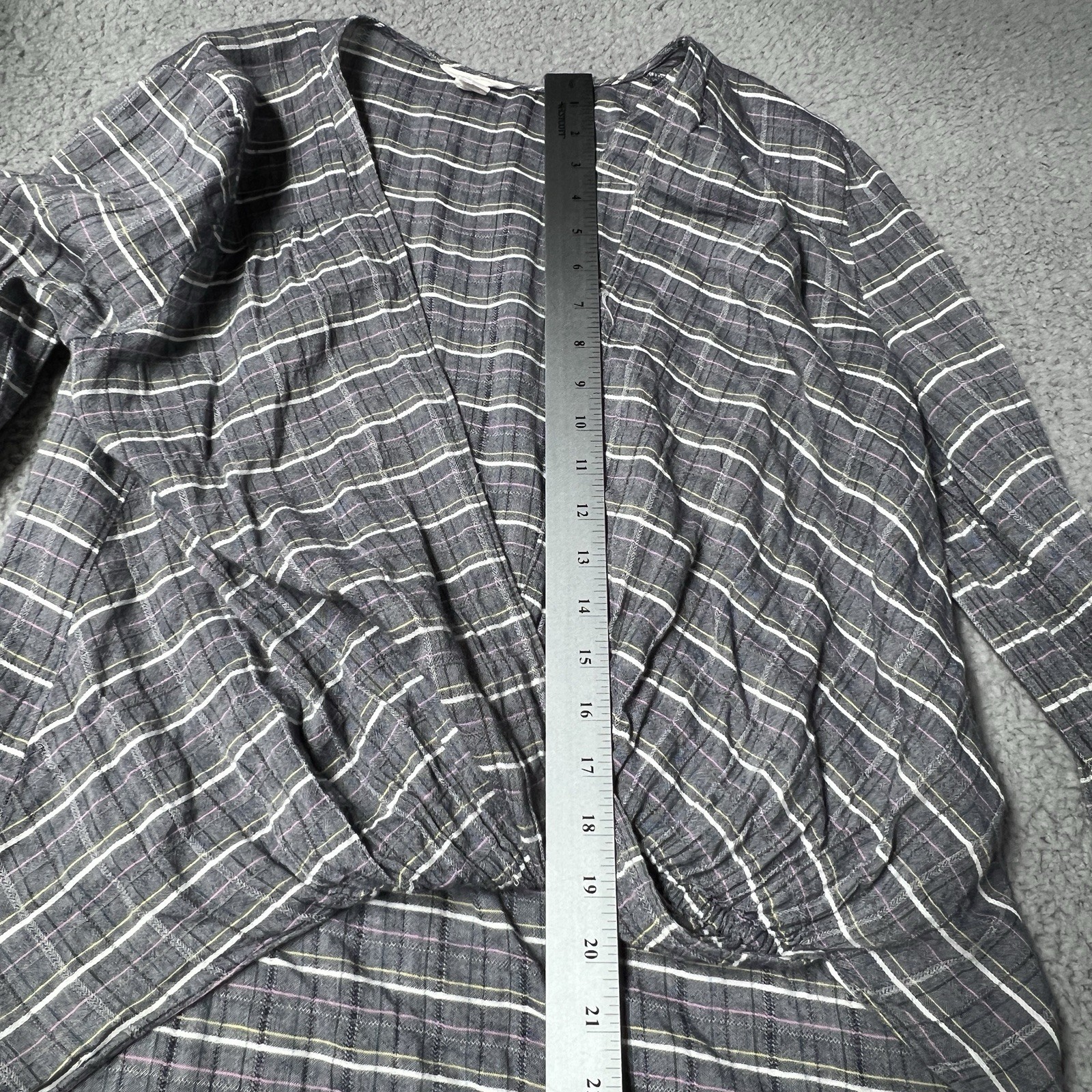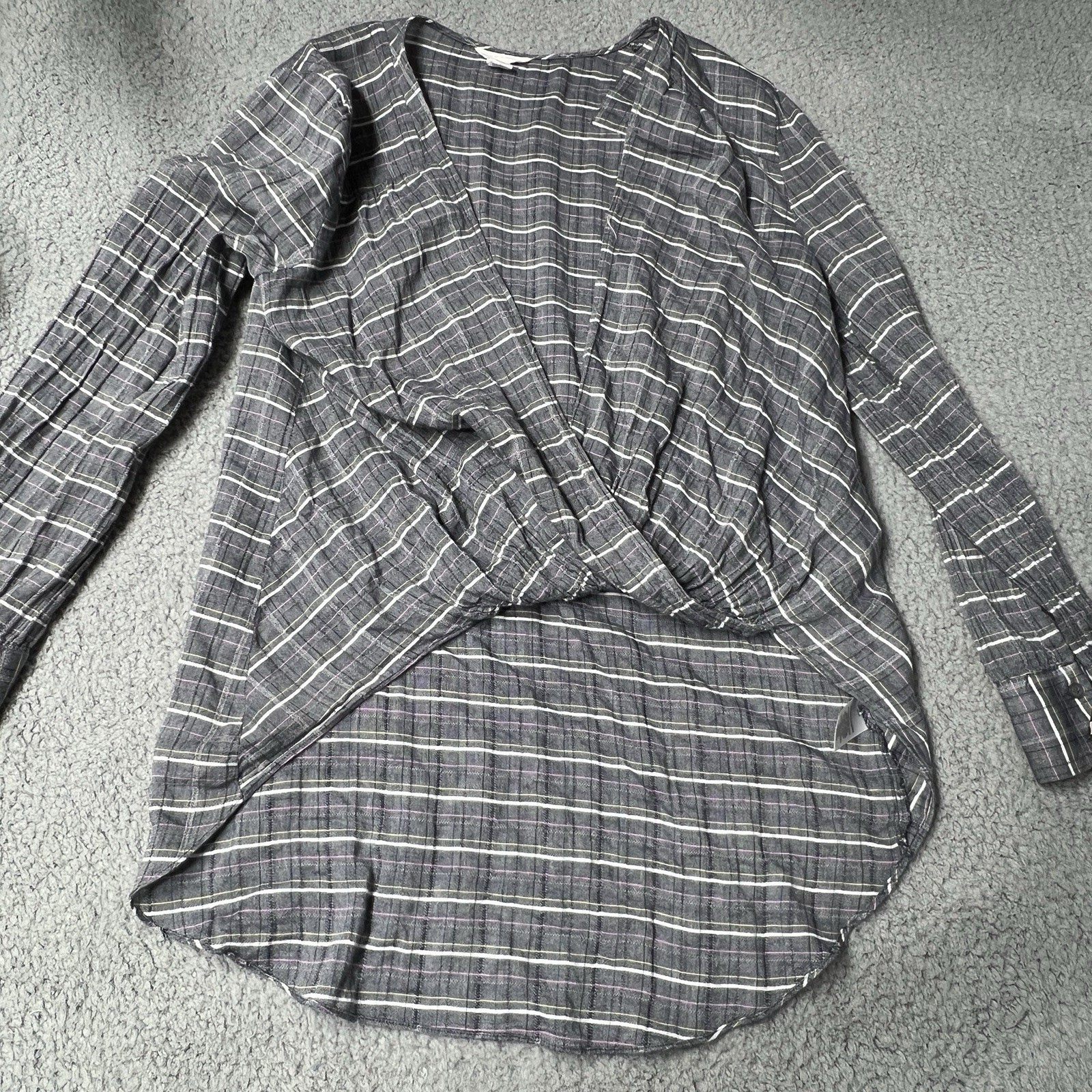 Caslon Top Women Sm Gray Pink Striped Faux Wrap Hi low Knotted Front Long Sleeve