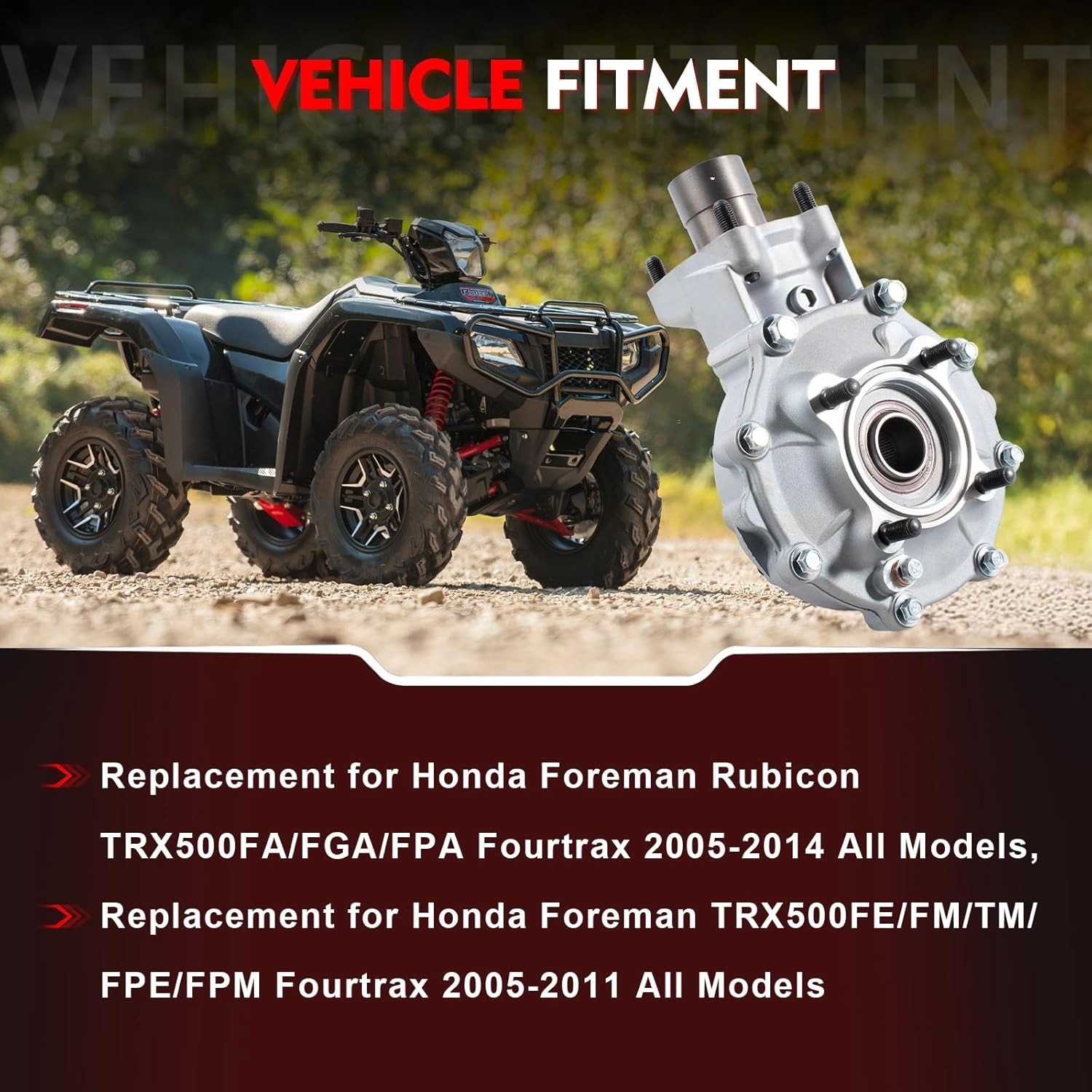 Replaces OEM Part Number: The Rear Differential Assembly Replaces 41300-HP0-B80, 41300-HP0-A00 Compatible Models: This Rear Differential Assembly Replacement for Honda Foreman Rubicon TRX500FA/FGA/FPA Fourtrax 2005-2014 All Models, Replacement for Honda Foreman TRX500FE/FM/TM/FPE/FPM Fourtrax 2005-2011 All Models Premium Material: The 41300-HP0-B80 Rear End Gear Differential is made of premium materials, wear-resistant and corrosion-resistant, can withstand the extreme working conditions. It is thoroughly tested to ensure performance and lasting quality High Performance: The differential assembly ensures that power is evenly distributed to the rear wheels, improving the traction and handling of the vehicle. Whether in mud, sand or mountains, it can provide smooth power output and excellent driving experience Buy with Confidence: Before purchasing the Rear Differential Assembly, we strongly recommend verifying your OE number and specific model to ensure a fit. Should you have any questions or require assistance, we are readily available to provide you timely service and support. Sincerely hope you have a happy life!