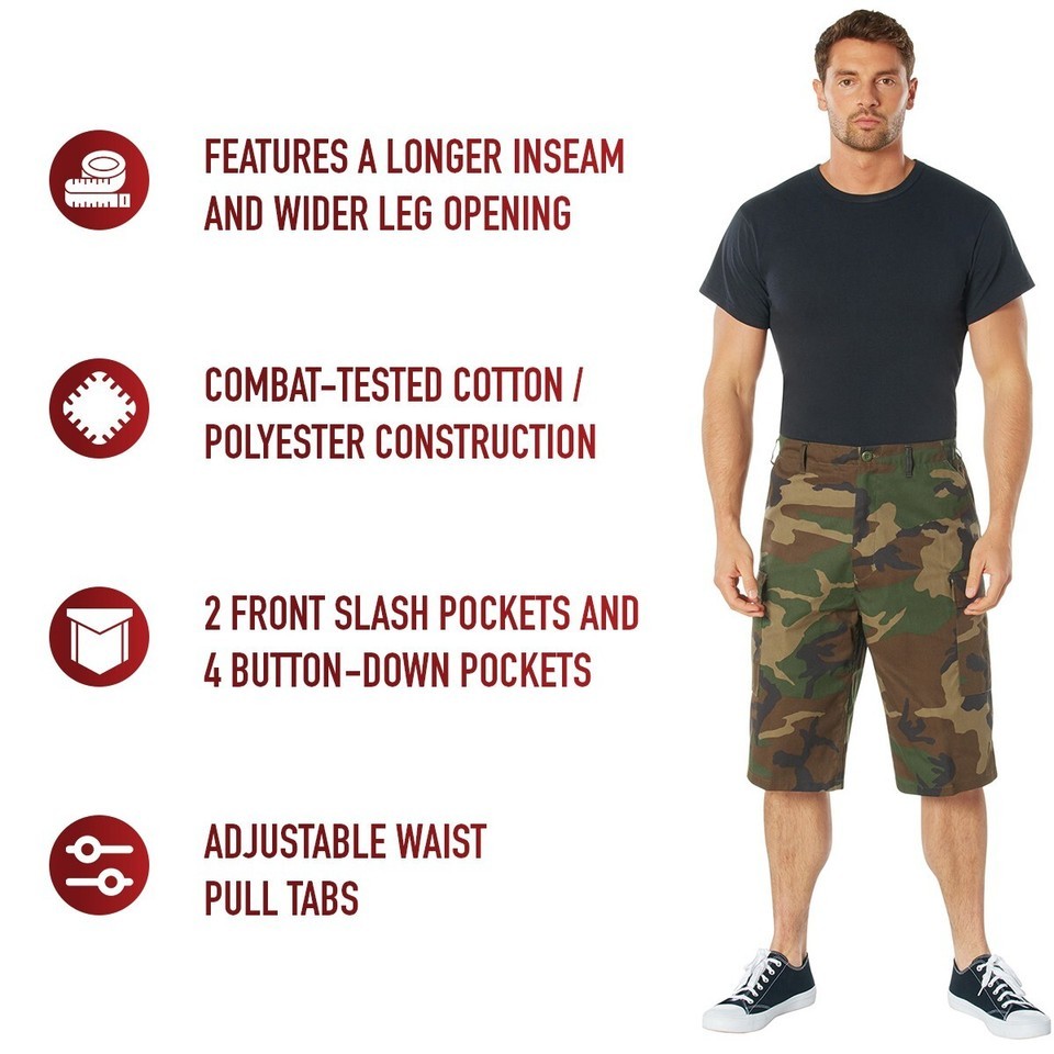 Discover Rothcoโs Long Length Camo BDU Shorts, designed with a longer inseam and wider leg opening for enhanced comfort and coverage. Crafted from a durable 55% cotton / 45% polyester blend, these shorts offer high-capacity storage and a customizable fit. Rothco stands out as the leader in camouflage clothing and accessories. Discover Rothcoโs Long Length Camo BDU Shorts, designed with a longer inseam and wider leg opening for enhanced comfort and coverage. Crafted from a durable 55% cotton / 45% polyester blend, these shorts offer high-capacity storage and a customizable fit.