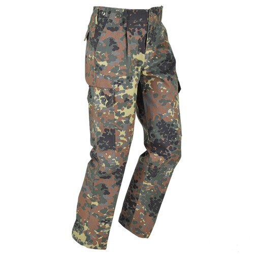 The German Gore-Tex Pants are the standard issue wet weather pants for the German Army. Made from a material very similar in performance to Gore-Tex yet featuring the German Flecktarn camouflage pattern, these pants are ideal for outdoor activities in the rain.