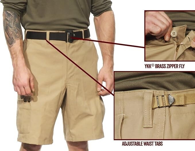 COMFORT FIT: Comfortable shorts features two adjustable side tabs secured with four bartacks and belt loops having wide opening with two bartacks for ease of movement and superior comfort; Comes with reinforced seat and YKK zipper fly