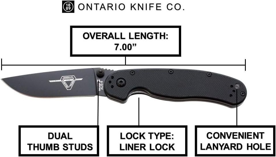 Ontario Rat II Linerlock Black Folding AUS-8 and 50 similar items