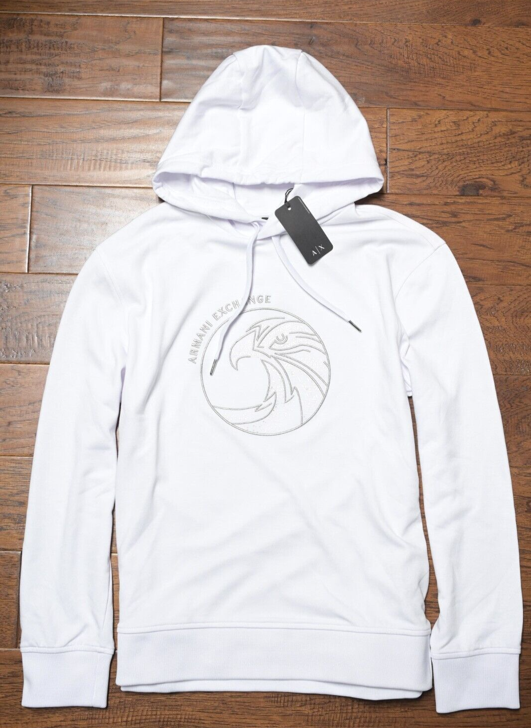 Armani Exchange $150 A|X Men's Embroidered Eagle White Hooded Jacket Hoodie M