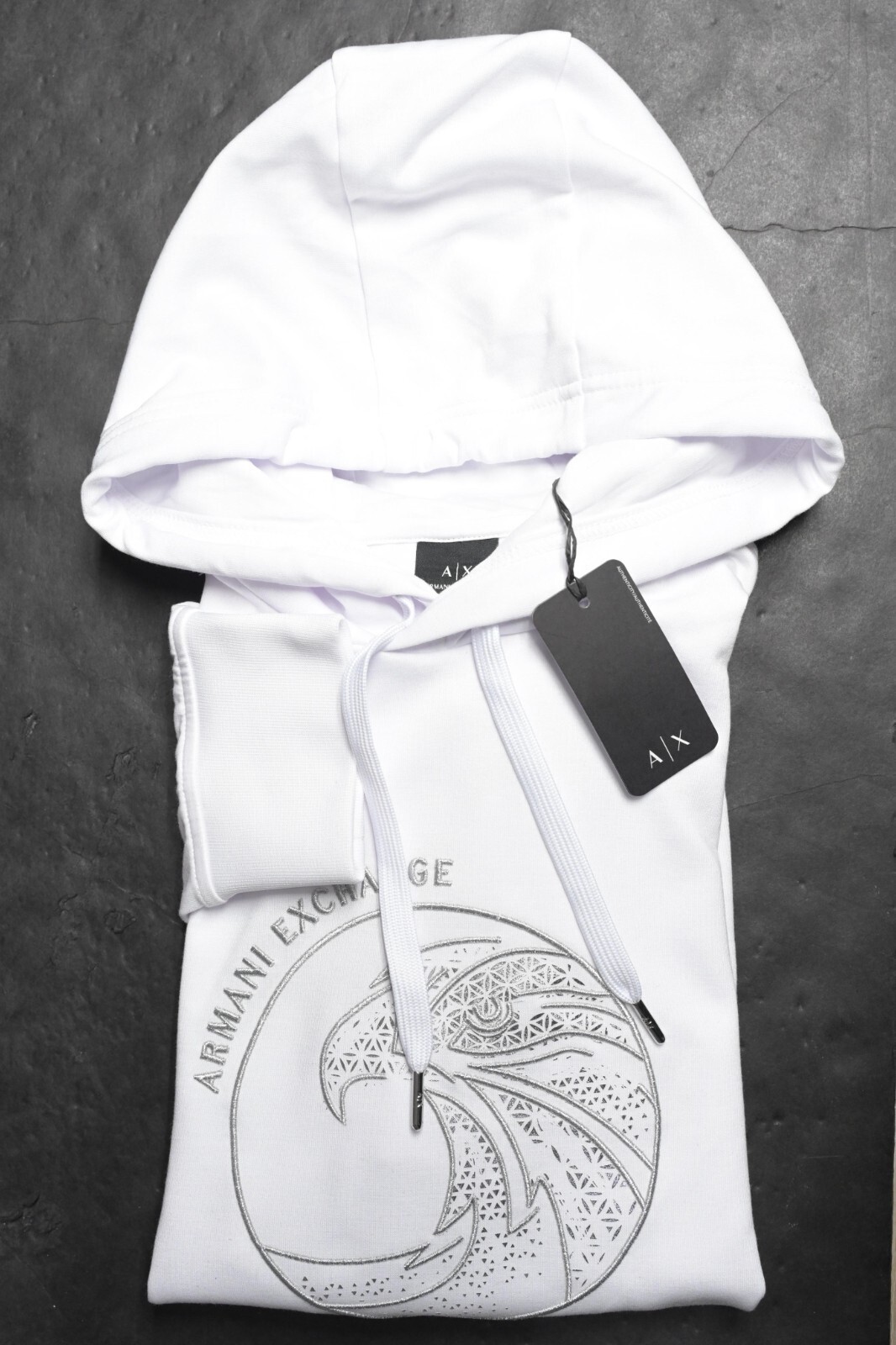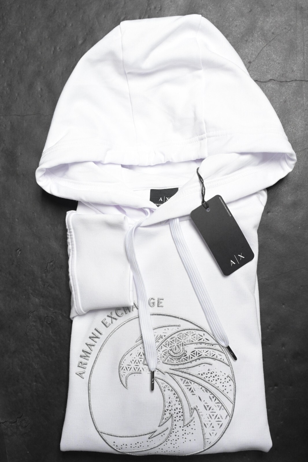 Armani Exchange $150 A|X Men's Embroidered Eagle Solid White Hooded Jacket Hoodie