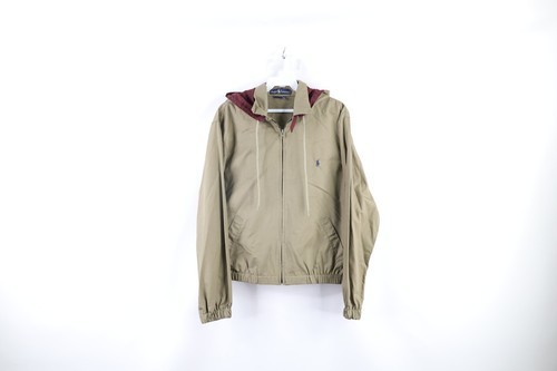 Vintage 90s Ralph Lauren Womens Medium Faded Hooded Full Zip Jacket Olive Green