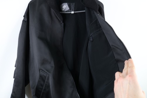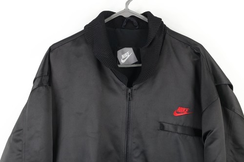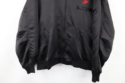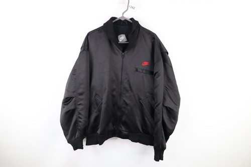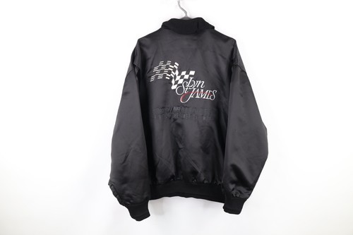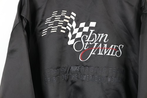 Vtg 90s Nike Mens Large Lyn St James Nike Racing Spell Out Satin Bomber Jacket