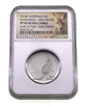 2016p Australia S $ 1 Kangaroo - High Relief NGCPF69 Ultra Cameo Uno dei primi 2500