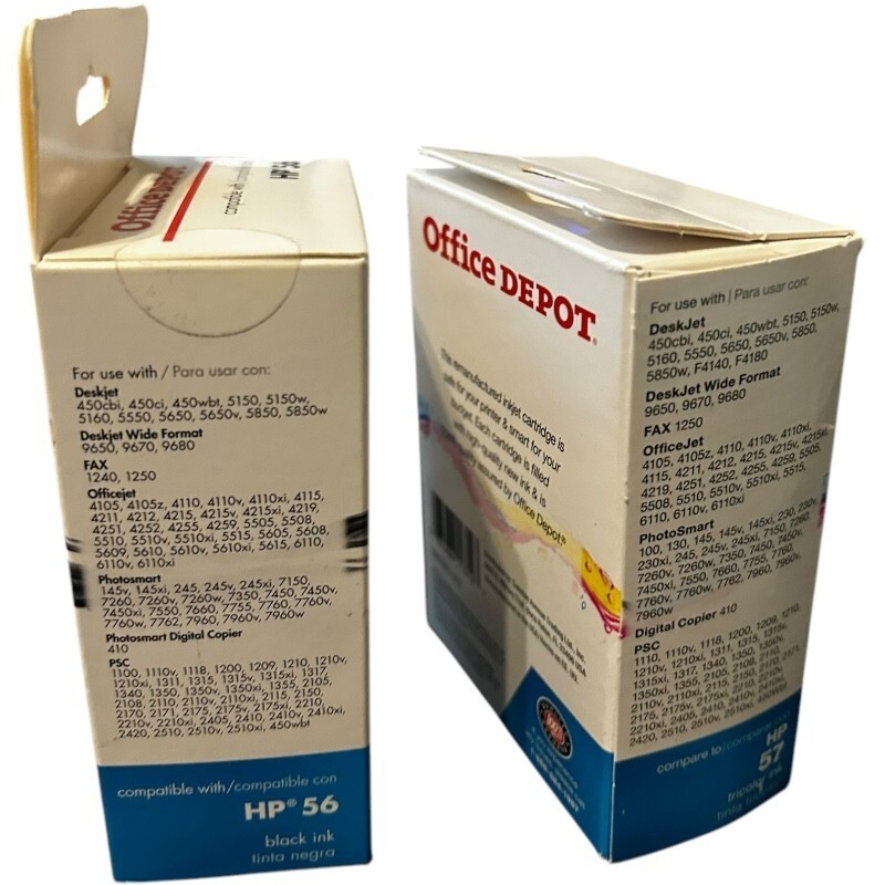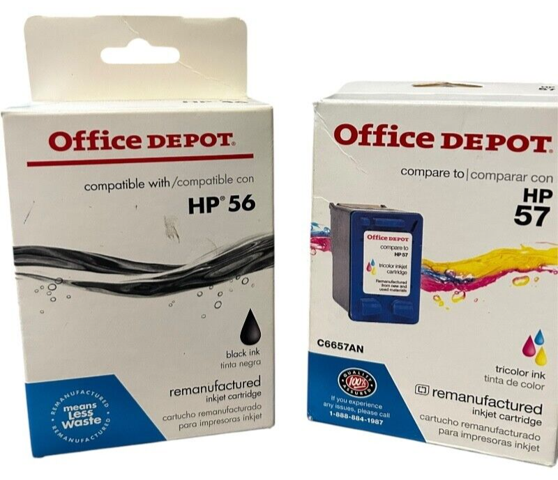 2 pcs - Office Depot Ink Cartridges - 1x HP56 black, 1x HP57 Tricolor - NEW
