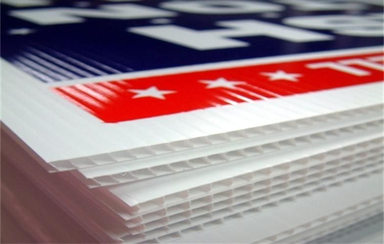 coroplast is used for most outdoor real estate and political signage, inserting a wire mounting frame for outdoor placement in the ground.