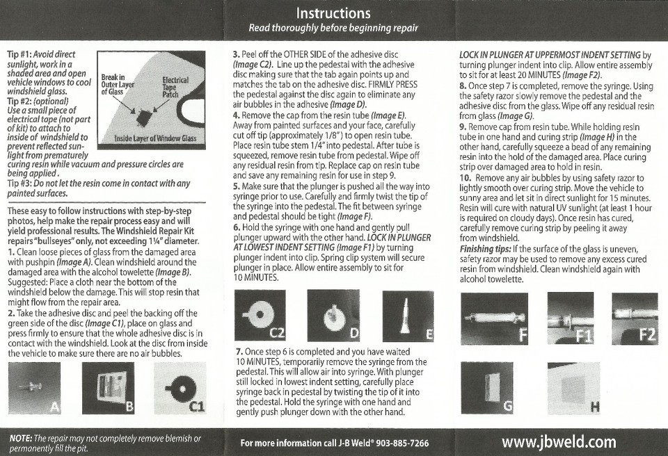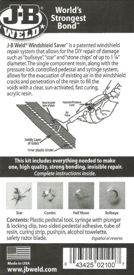 JB Glass WINDSHIELD SAVER REPAIR KIT syringe system auto window J-B WELD 2100