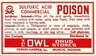 1 Antique Pharmacy Label BENZINE DANGEROUS! The Owl Drug Stores Muncie Indiana