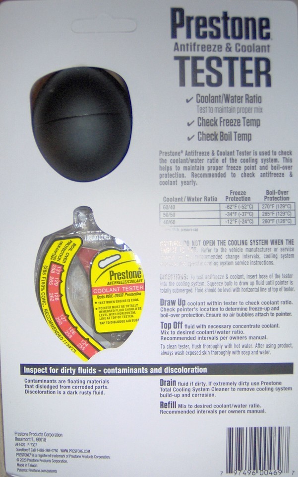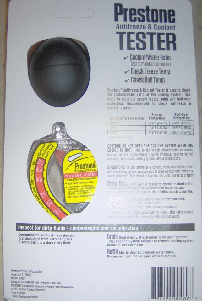 Prestone ALL Coolant ANTIFREEZE TESTER Radiator HYDROMETER dex cool peak AF-1420