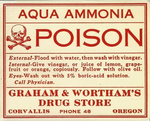 Vintage Pharmacy Label POTASSIUM HYDROXIDE POISON Owl Drug Stores |