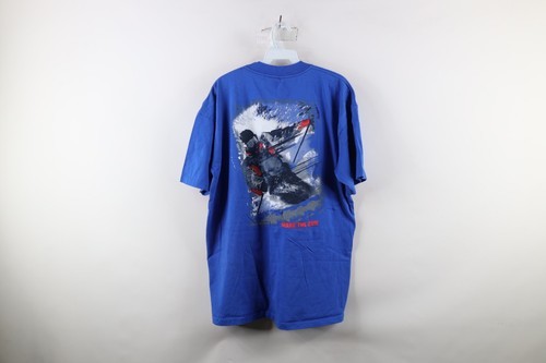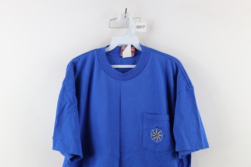 Vintage 90s Marlboro Mens XL Faded Compass Skiing Pocket T-Shirt Blue Cotton USA