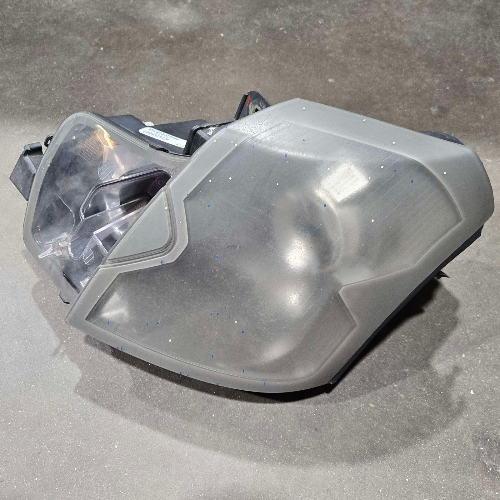 THE HEADLIGHT IS IS IN FAIR, BUT USABLE CONDITION. THERE ARE SOME SPECKS OF PAINT THAT HAVE DRIPPED ONTO THE LENS. THE PAINT COMES OFF WITH A LITTLE SCRAPING, AND WILL COME OFF COMPLETELY IF RESTORED. PLEASE SEE PICTURES AND RESEARCH PART NUMBERS TO ENSURE A PROPER FITMENT TO YOUR VEHICLE!!