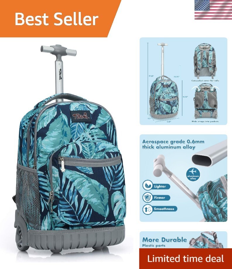 18.92" Rolling Backpack for Kids - Stylish Travel School Bag with Quiet Wheels