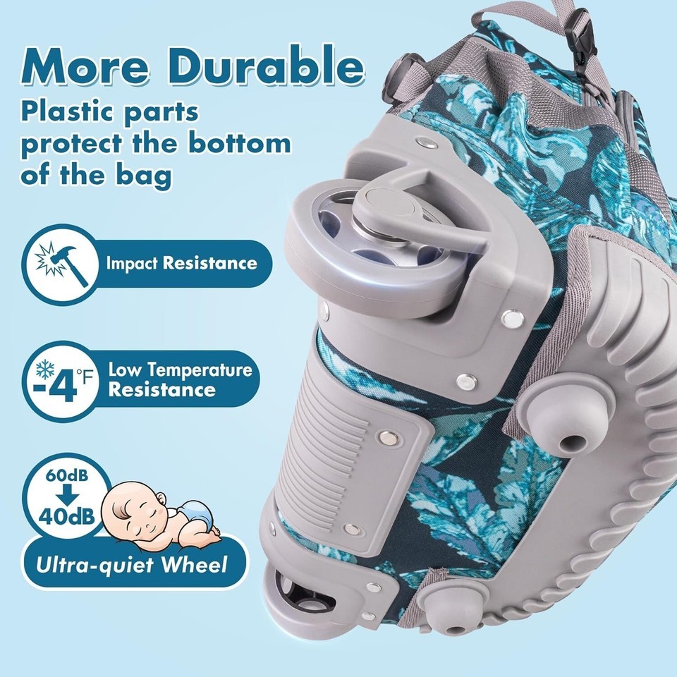Quiet Wheels: Experience peace and quiet with wheels that produce only 40 dB of noise. Constructed for durability, the armor bottom protection system is water-resistant and can withstand low temperatures down to -4 ?. Designed to bear at least 30lbs without compromising stability.