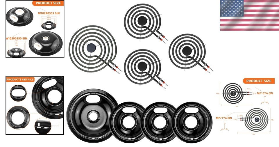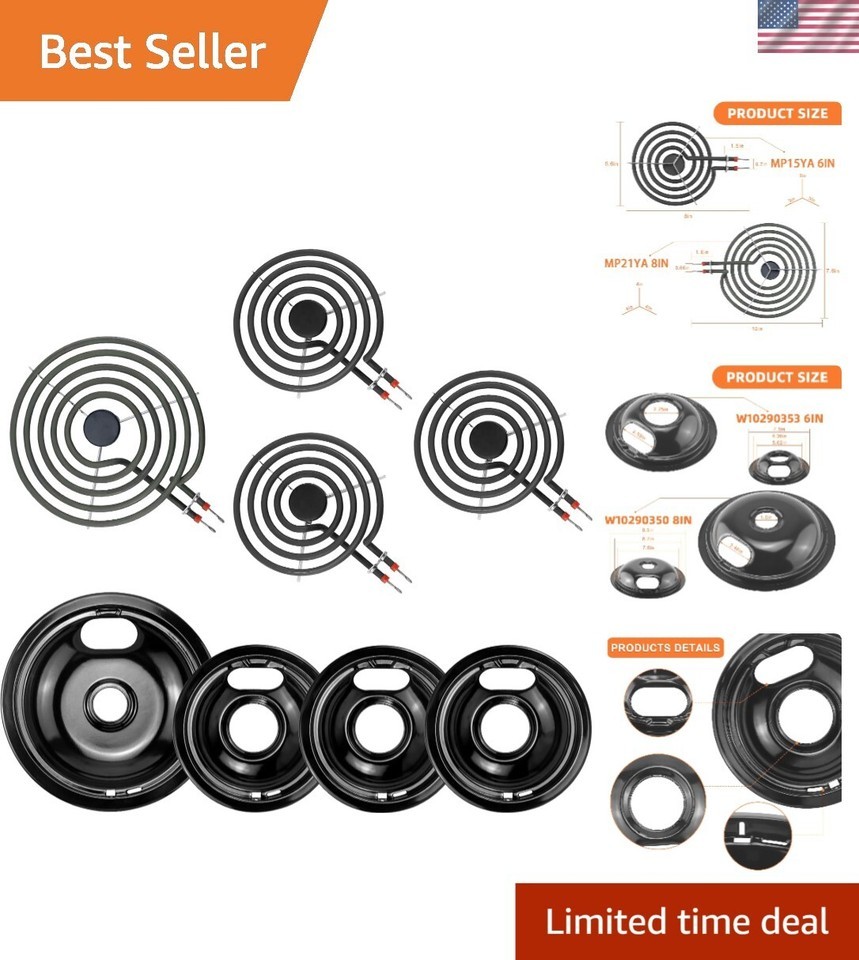 High-Temperature Electric Stove Burner Replacement - Includes Multi-Sized Pans