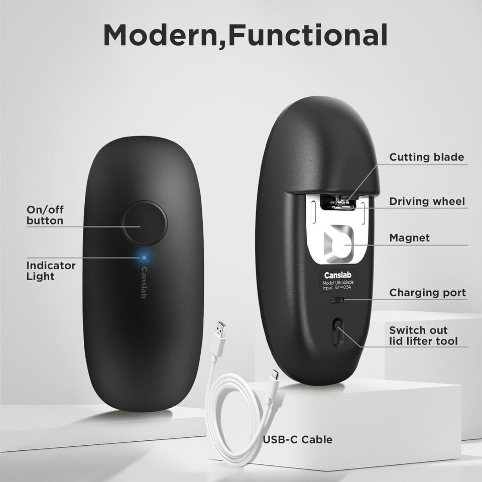 Ergonomic USB Rechargeable Can Opener - Automatic, Pocket-Sized & Noise-Reducing
