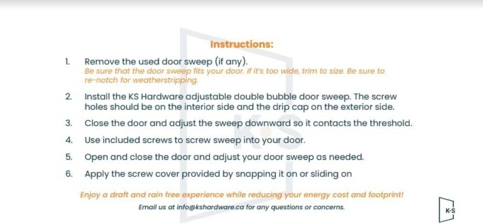 Door Sweep, Screws, Screw Covers |