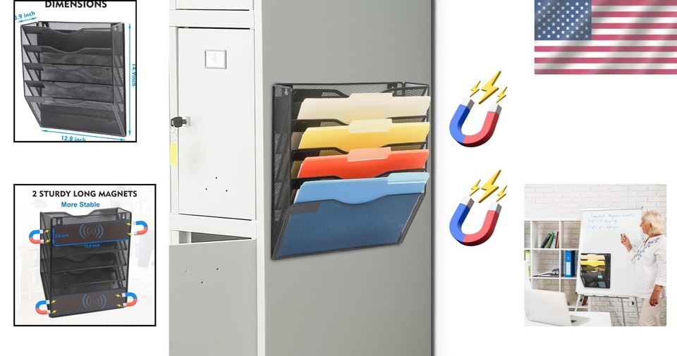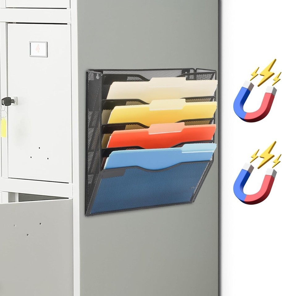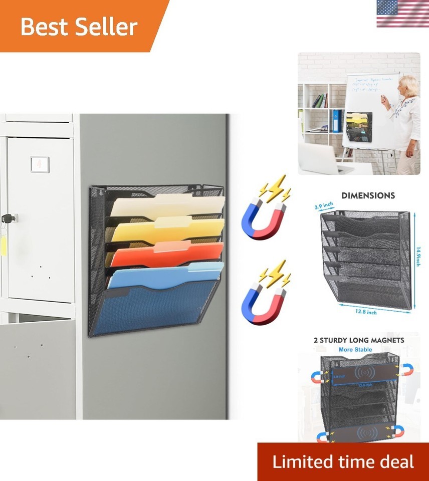 Versatile 5 Pocket Wall-Mounted File Rack - Perfect for Home, School, or Office