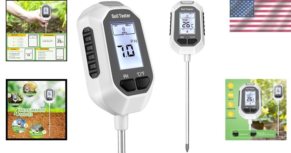 4-in-1 Functionality: Efficiently measures soil moisture, pH, temperature, and sunlight to ensure your flowers and plants thrive.