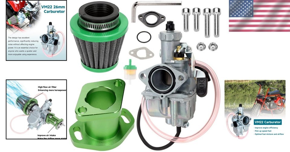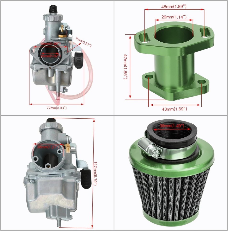 Items Included: Carburetor,Air filter,Fuel filter,Wrench,Intake manifold,Set of gaskets,Mounting screws