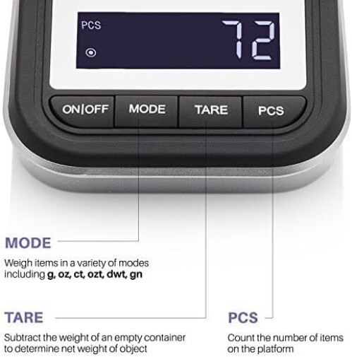 No more guesswork with our tare function and piece counting feature, which allow you to enjoy an accurate and hassle-free experience. Whether you?re a professional jeweler, a home cook, or someone that needs precise measurements for medications, our scale is suited to your needs.