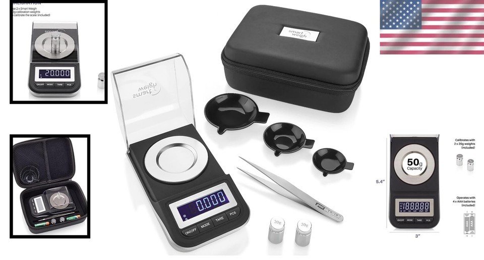 Premium 50g x 0.001g Digital Scale with Tweezers Calibration Weights Included