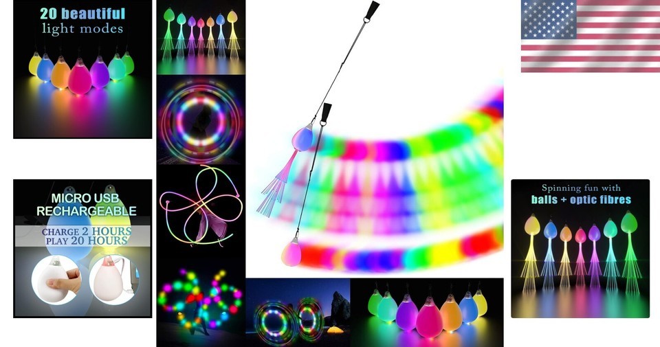 USB Rechargeable LED Poi Balls - 20 Stunning Bright Colors and Easy Spinning