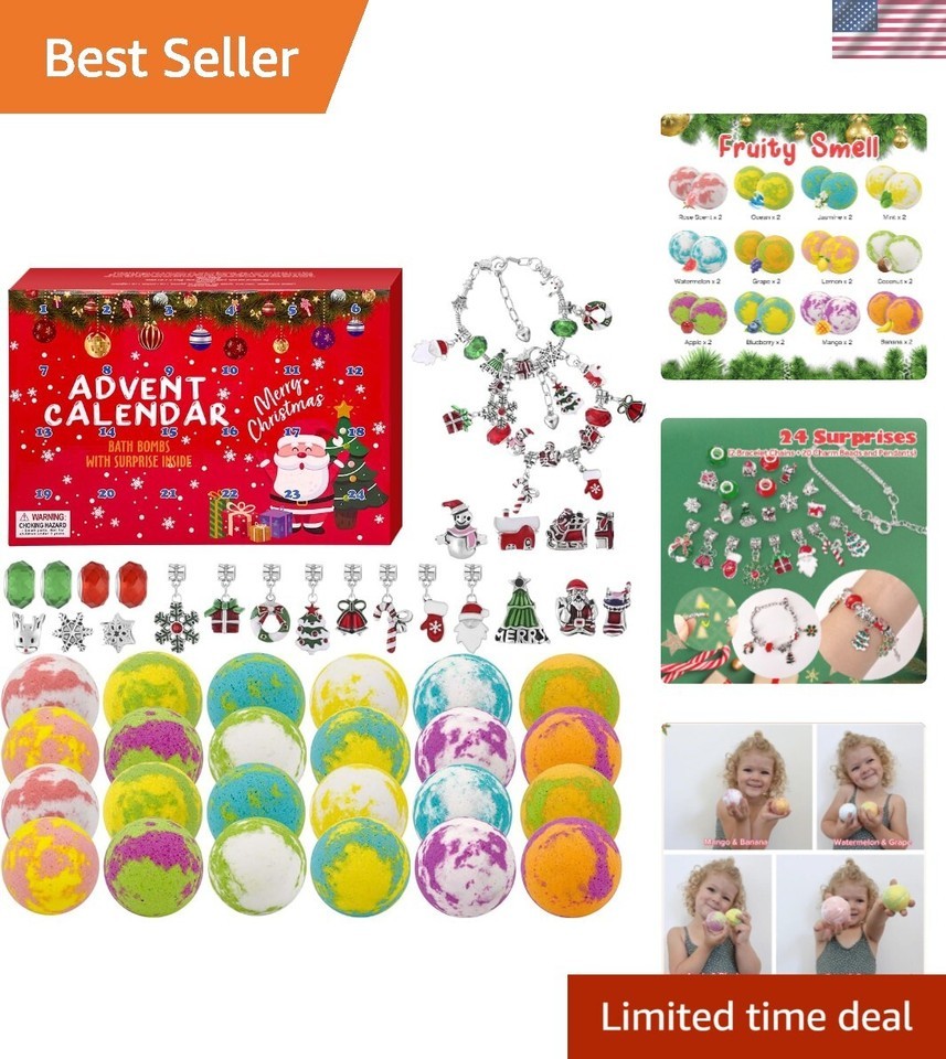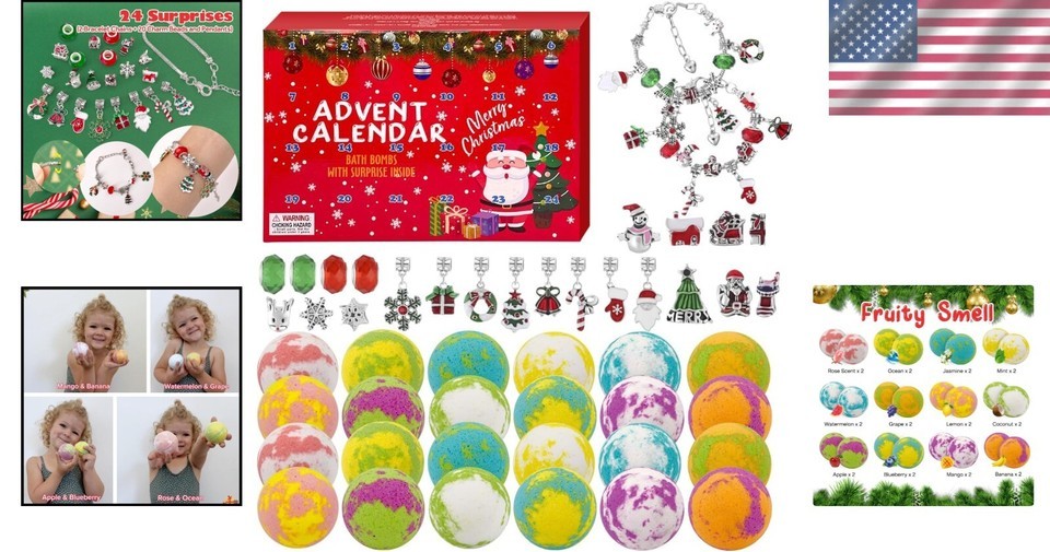 ? **Christmas Bath Bombs Advent Calendar 2024**: Contains 24 delightful bath bombs, each revealing a unique jewelry surprise, making bath time magical!