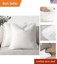 Luxuriously Soft Fringe Linen Cushion Covers - 20x20 Inch Set of 2, Cream White