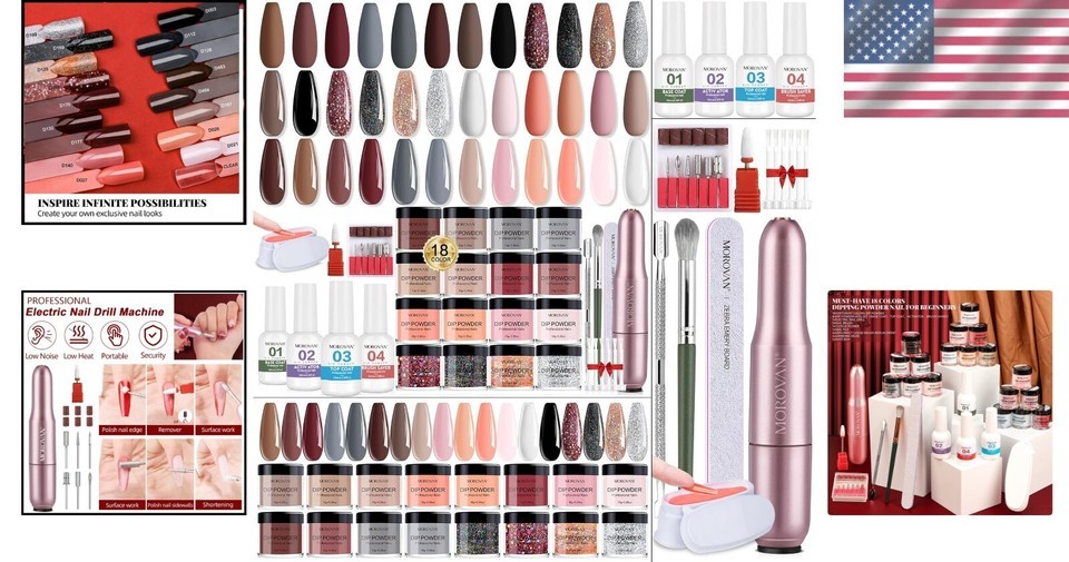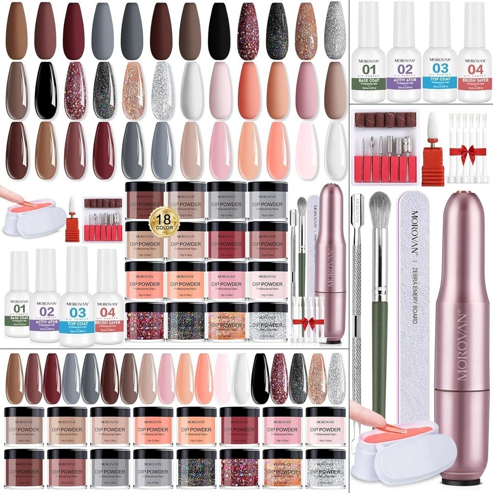 Ultimate Nail Dip Powder Kit with 18 Colors Electric Drill