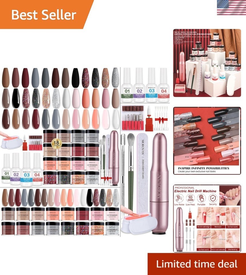 Ultimate Nail Dip Powder Kit with 18 Colors & Electric Drill for Salon Results