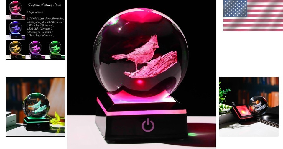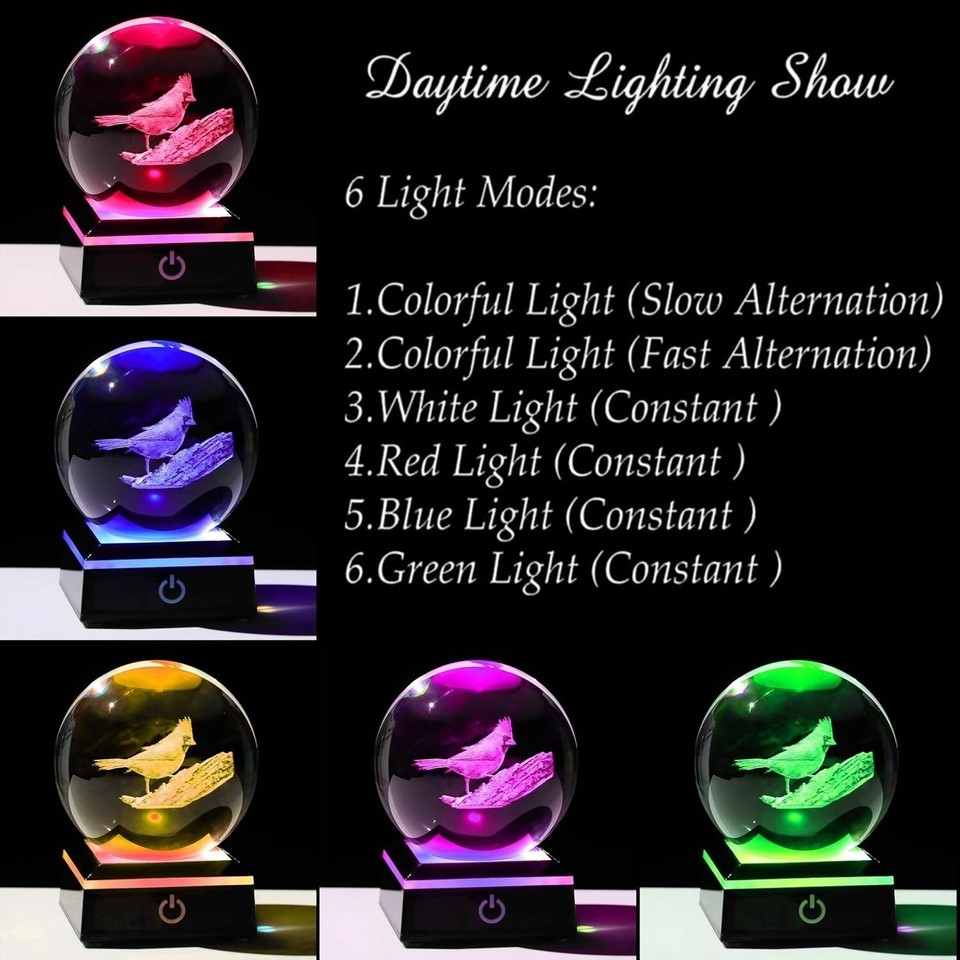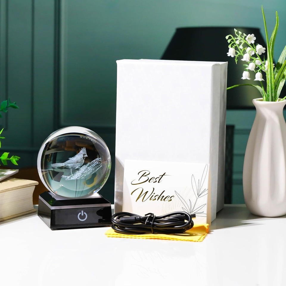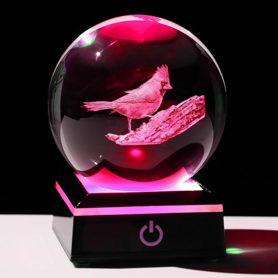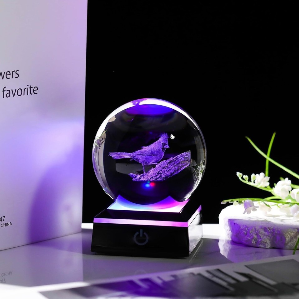 3D Laser Engraved Cardinal Night Light - Touch Control Crystal Figurine