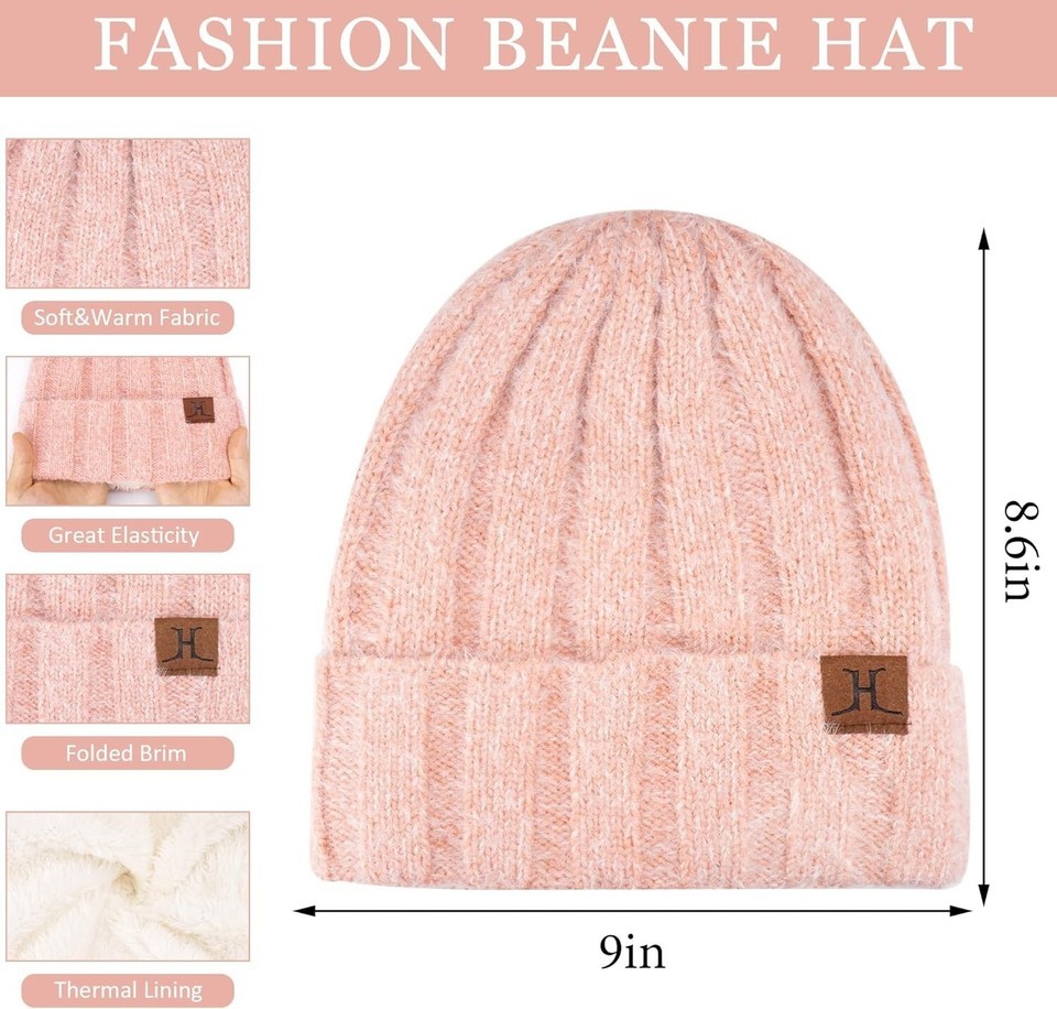 Warm Fleece Lined Beanie Hat: Features a double-layer design for breathability and durability; thick fleece lining provides comfort and warmth without itching.