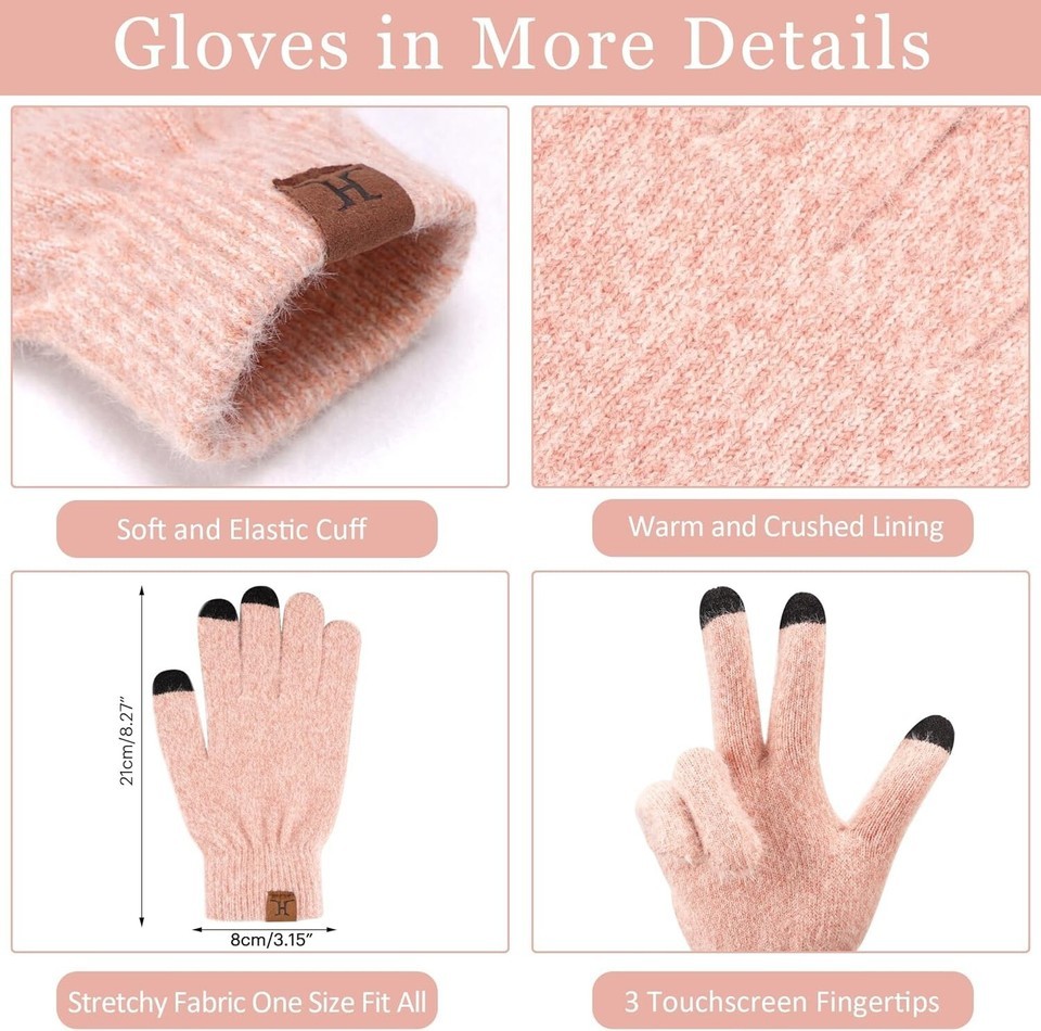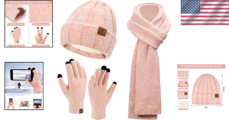 Set Includes: 1 Winter Beanie Hat + 1 Touchscreen Gloves + 1 Long Scarf (3 in 1 set).