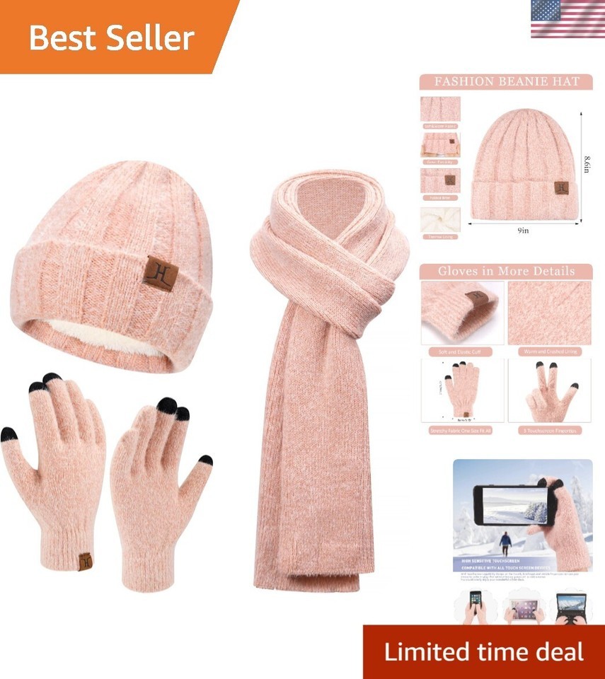 Fleece Lined Women's Beanie Scarf and Touchscreen Gloves