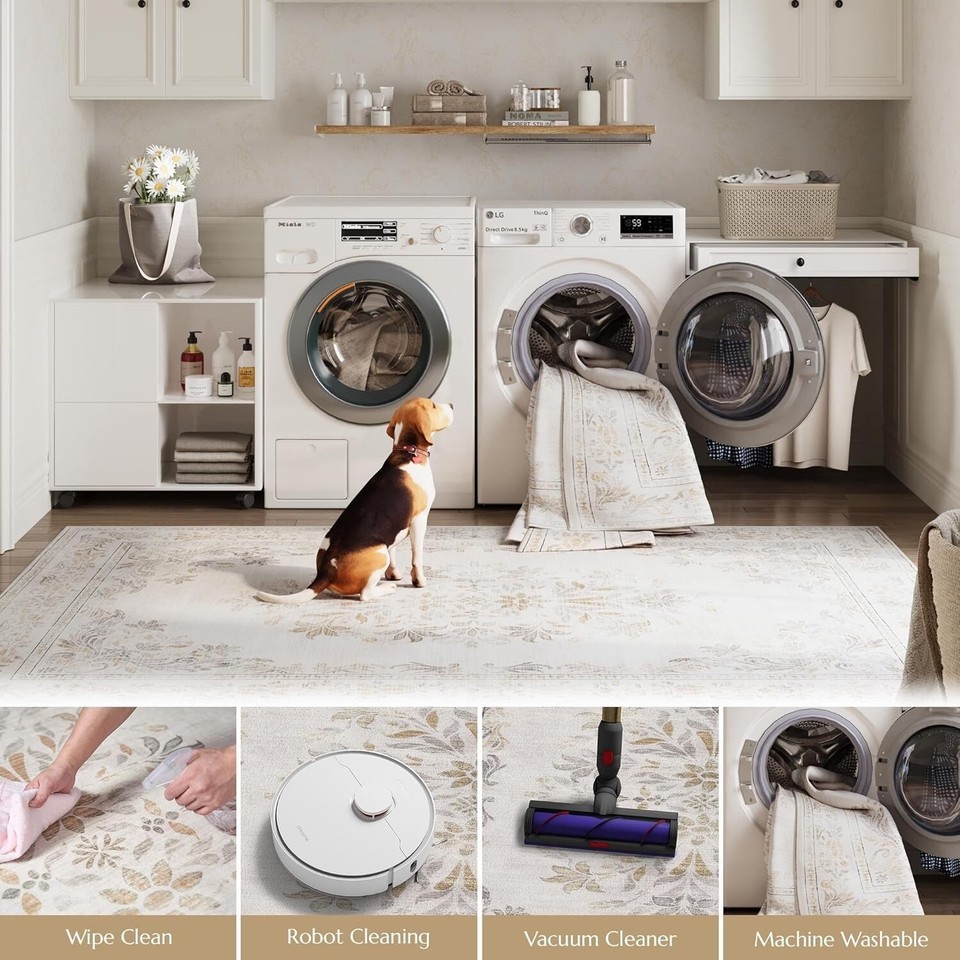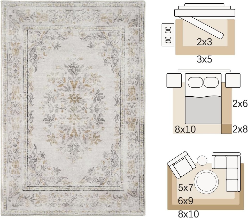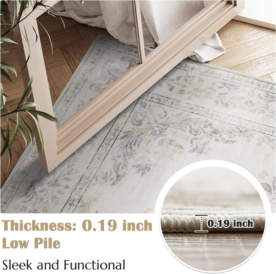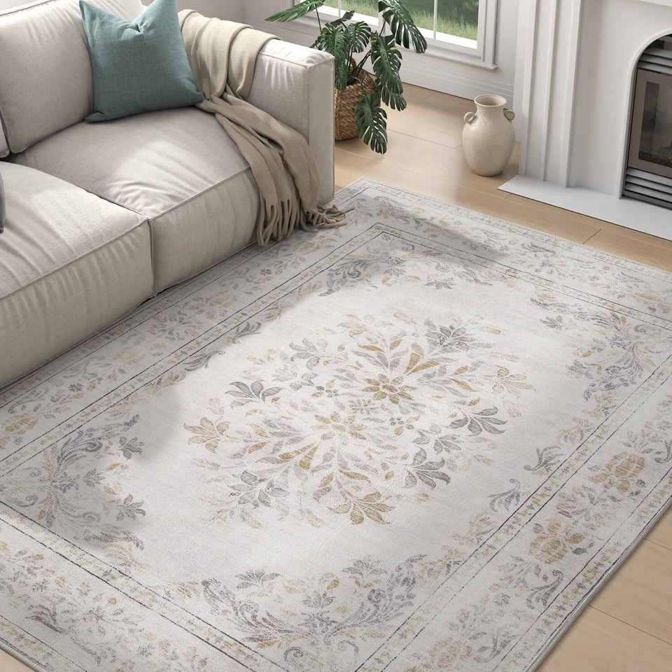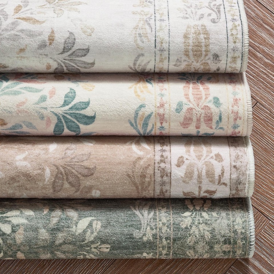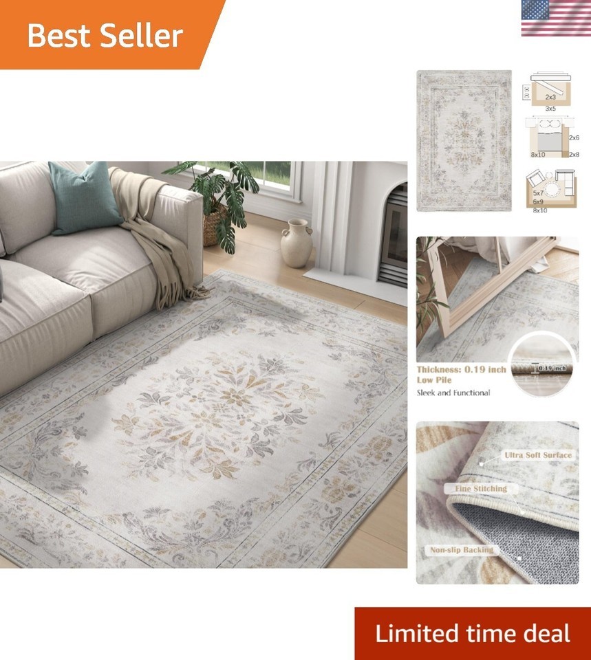 Elegant 5x7 Low Pile Vintage Floral Rug - Stain Resistant for Living Spaces