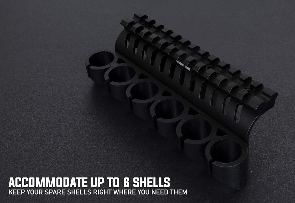 Are you looking to elevate your shotgun's performance? This premium 6 Shot Side Saddle Shell Holder is the epitome of functionality and durability, crafted explicitly for Mossberg models 500, 590, and Shockwave Series. With its seamless installation process and integrated optics capabilities, this holder not only organizes your ammo but also empowers you with the confidence to perform at your best.
