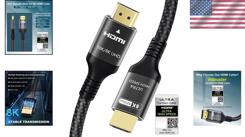 Elevate your home theater and gaming adventures to new heights with our Certified 20FT HDMI 2.1 Cable. Experience pristine picture quality and effortless integration with your devices, all while ensuring durability and longevity. Don?t wait any longer to transform your entertainment experience?order yours today!