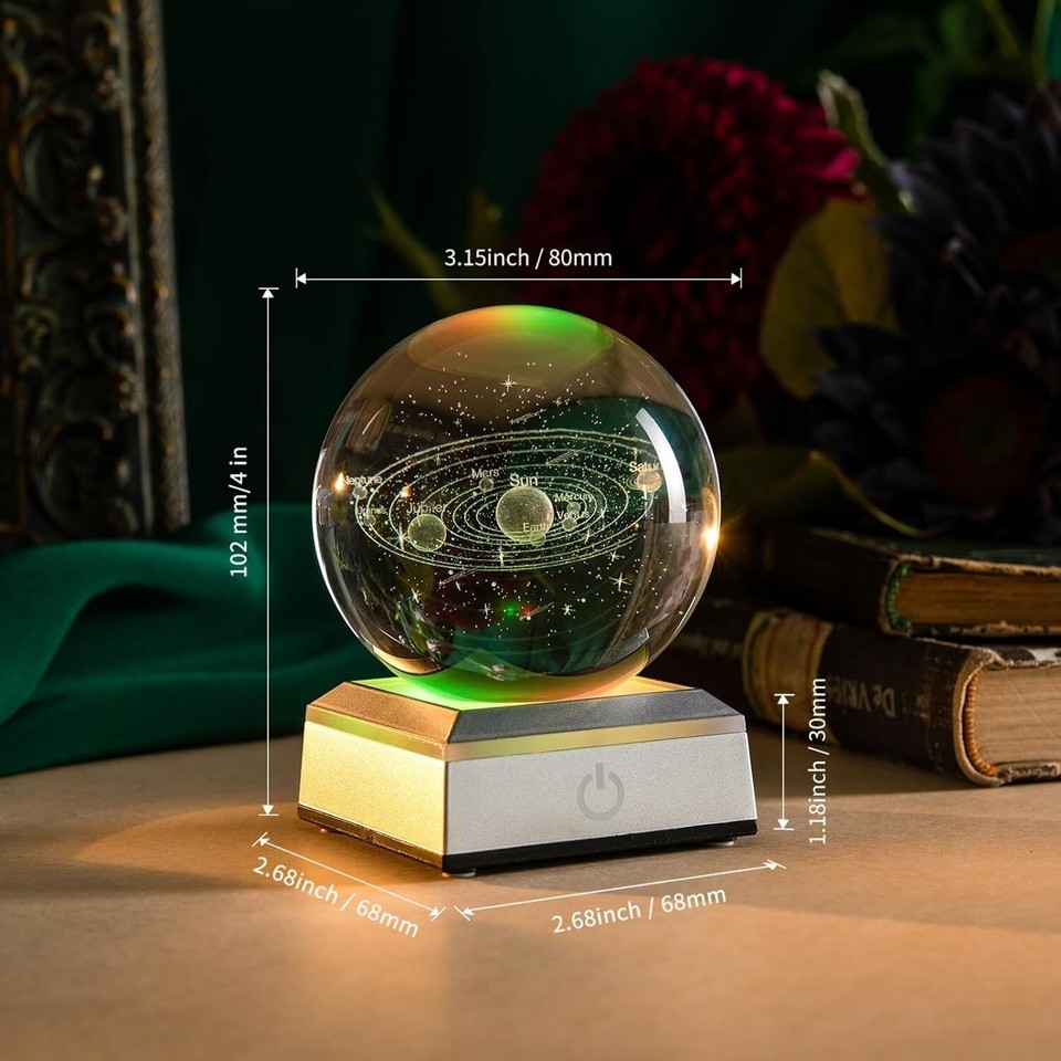 Elevate your space with our stunning Laser Engraved Planetarium Crystal Ball. This exquisite piece, meticulously crafted from high-quality K9 Crystal, captures the beauty of the solar system while providing a unique educational experience for children and adults alike. With an enchanting LED light-up base that allows you to choose from six mesmerizing colors, this crystal ball is not just a decorative item; it transforms any room into a celestial wonderland.
