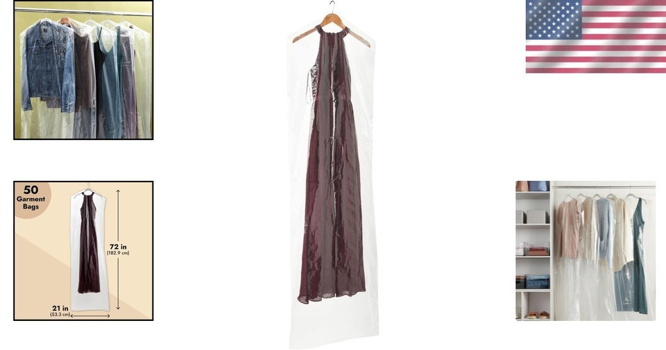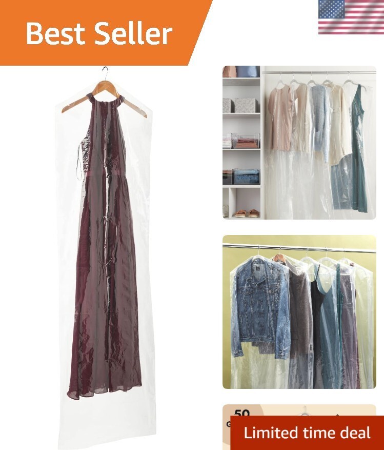 Elevate your garment storage with our Reusable Clear Plastic Garment Bags. Designed for excellence and convenience, these bags are not just functional but also safeguard your precious attire during storage or travel. Protect your long dresses and important garments from dust, dirt, and other hazards without compromising on style. With a generous supply of 50 bags, you can ensure every piece stays fresh, organized, and ready to shine.
