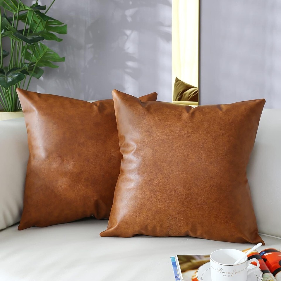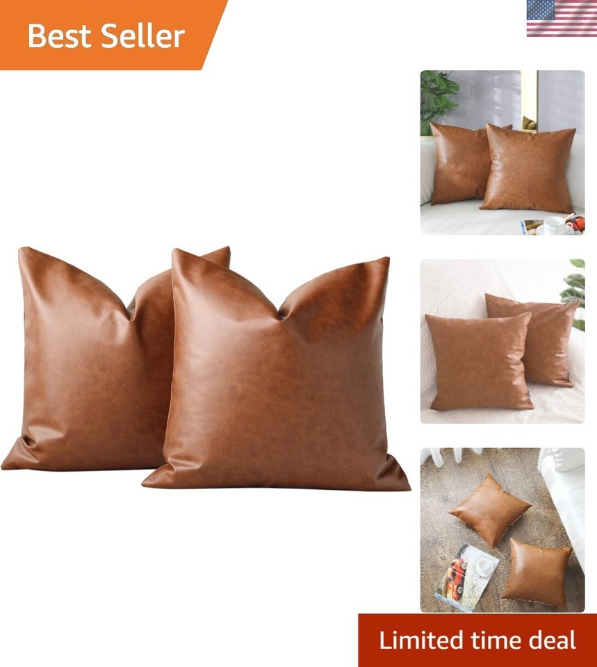 Luxury Faux Leather Square Pillows - 24x24 Inch Covers for Sophisticated Homes